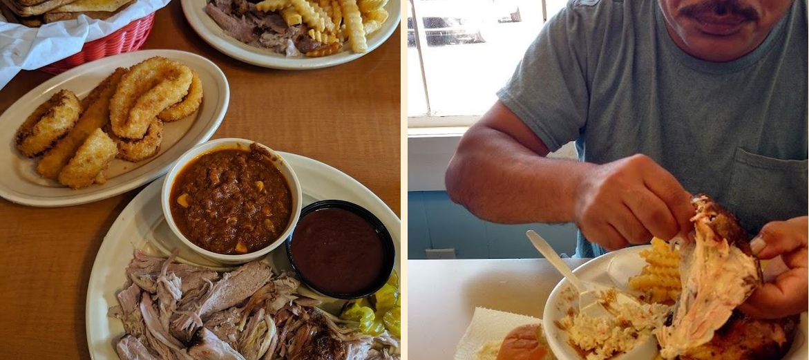 Don't miss the pulled pork plate. It's flavorful and tender. The beef brisket sandwich is also a favorite. For sides, the baked beans and cole slaw complete the meal nicely.
